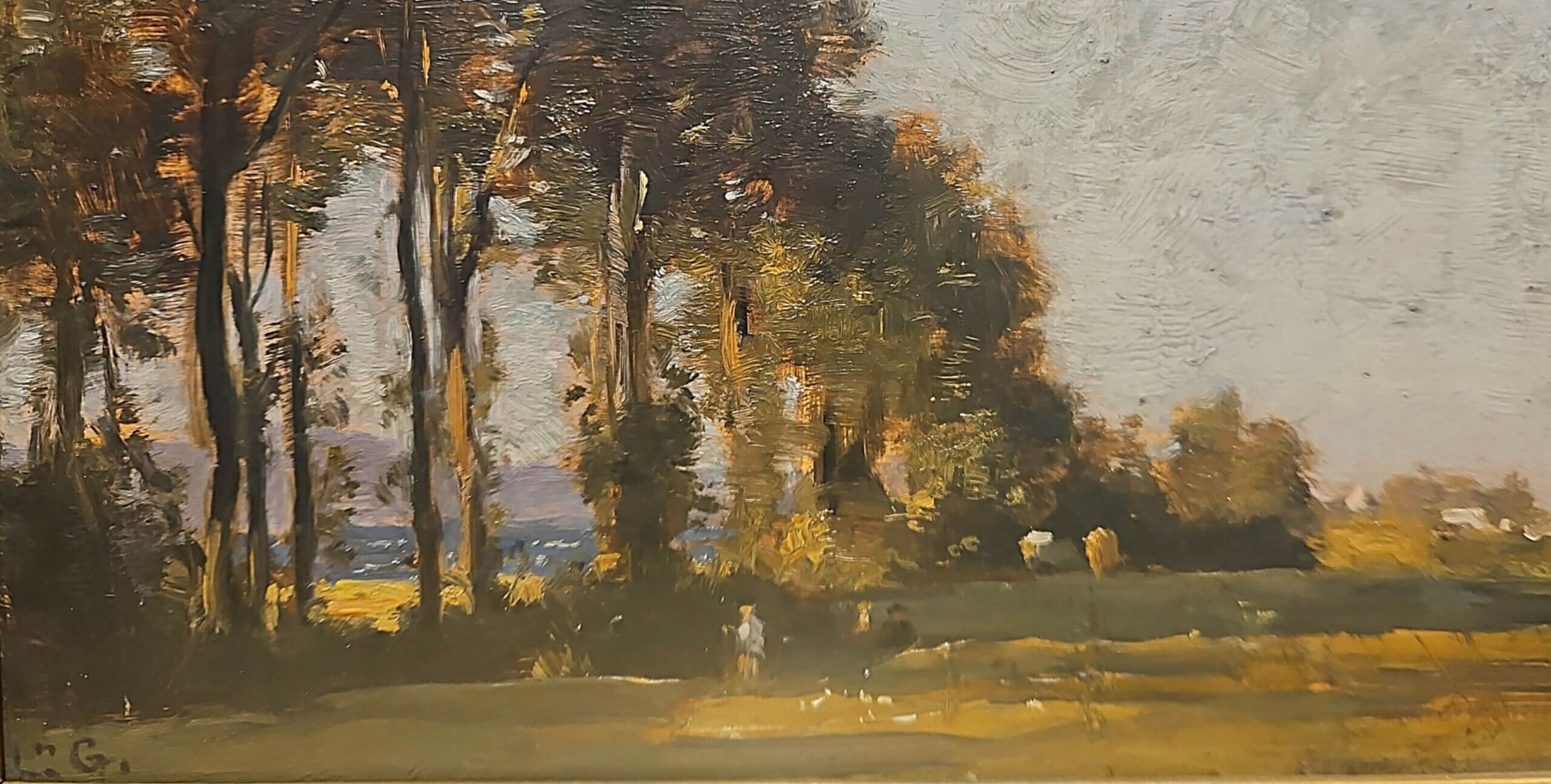 Landschaft am Genfersee mit Spaziergängern gemalt von Léon Gaud