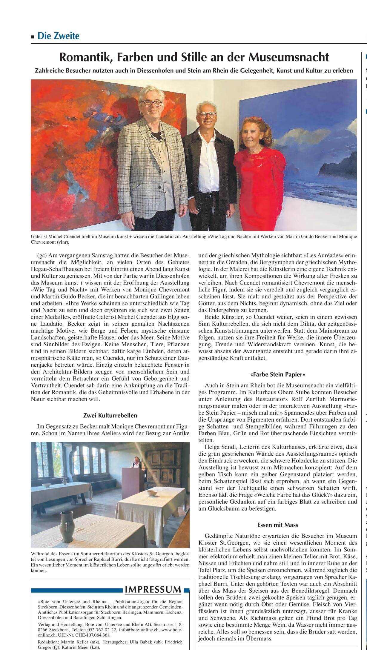 Die Cuendet Kunstgalerie wurde am 23. März 2018 mit einer Ausstellung über Schweizer Kunst und deutsche Kunst des 18. bis 20. Jh. eröffnet.